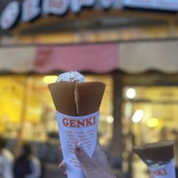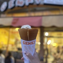 Genki is my absolute favorite crepe spot in San Francisco! This charming mini mart has a cozy crepe corner that's always a delight. They also have a great selection of Kit-Kats, which is a fun bonus. Staff is always nice as well! I first visited Genki back in 2020, and I was hooked right away. Although it's a bit out of the way for me, I make a point to stop by whenever I'm in town. My go-to order is the strawberry ice cream with strawberries and cheesecake--it's simply amazing. On my last visit, which was for my birthday, I decided to mix it up with cookies and cream ice cream, strawberries, and brownies. It was tasty, but I still think my usual combo is the best! Genki is a gem that's definitely worth the trip!