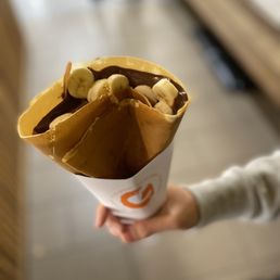 Came here around 7pm on a weeknight. Lots of customers but received my crepe in hand in ten min! Ordered the ice cream crepe with nutella and whip cream ~$8. I think it's a bit steep but it's definitely big enough to share between two people!! Ice cream was a little icey Perfect little sweet treat stop with a cute Asian market as part of the shop. Would come again!